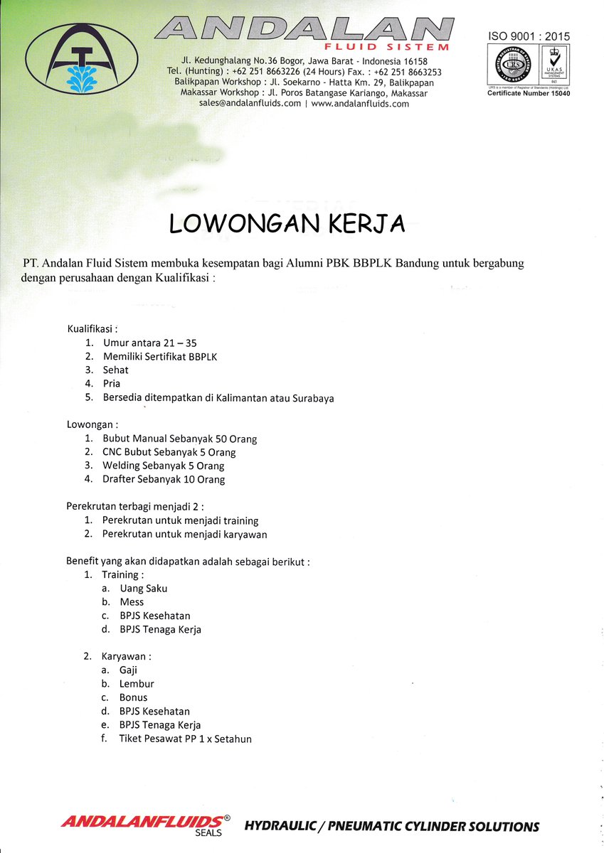 Blk Bandung Na Twitteri Lowongan Kerja Dibutuhkan Segera Alumni Blk Bandung Khususnya Kejuran Op Mesin Produksi Untuk Lowongan Kerja Di Pt Andalan Fluid Sistem Pendaftaran Bisa Langsung Ke Kios 3in1 Selambatnya 10