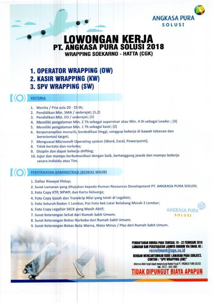 Info Lowongan Kerja On Twitter Lowongan Pt Angkasa Pura Solusi Untuk Sma Smk Anak Bumn Pt Angkasa Pura Ii Persero Syarat Lokasi Cara Melamar Baca Di Https T Co Mhgmxwvgfb Https T Co Hh8cn9fcgr