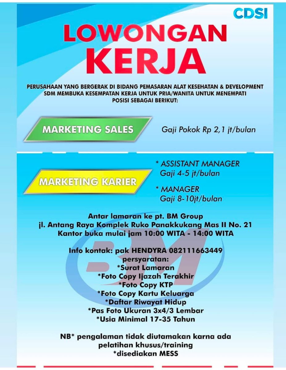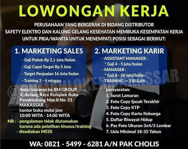 Rumah Loker Makassar בטוויטר Antar Lamaran Di Pt Bm Jl Antang Raya Kompleks Panakukang Mas Ii No 21 Makassar 5 Ruko Dari Samping Jilc Antang Mulai Jam 10 Pagi Sampe Jam 2