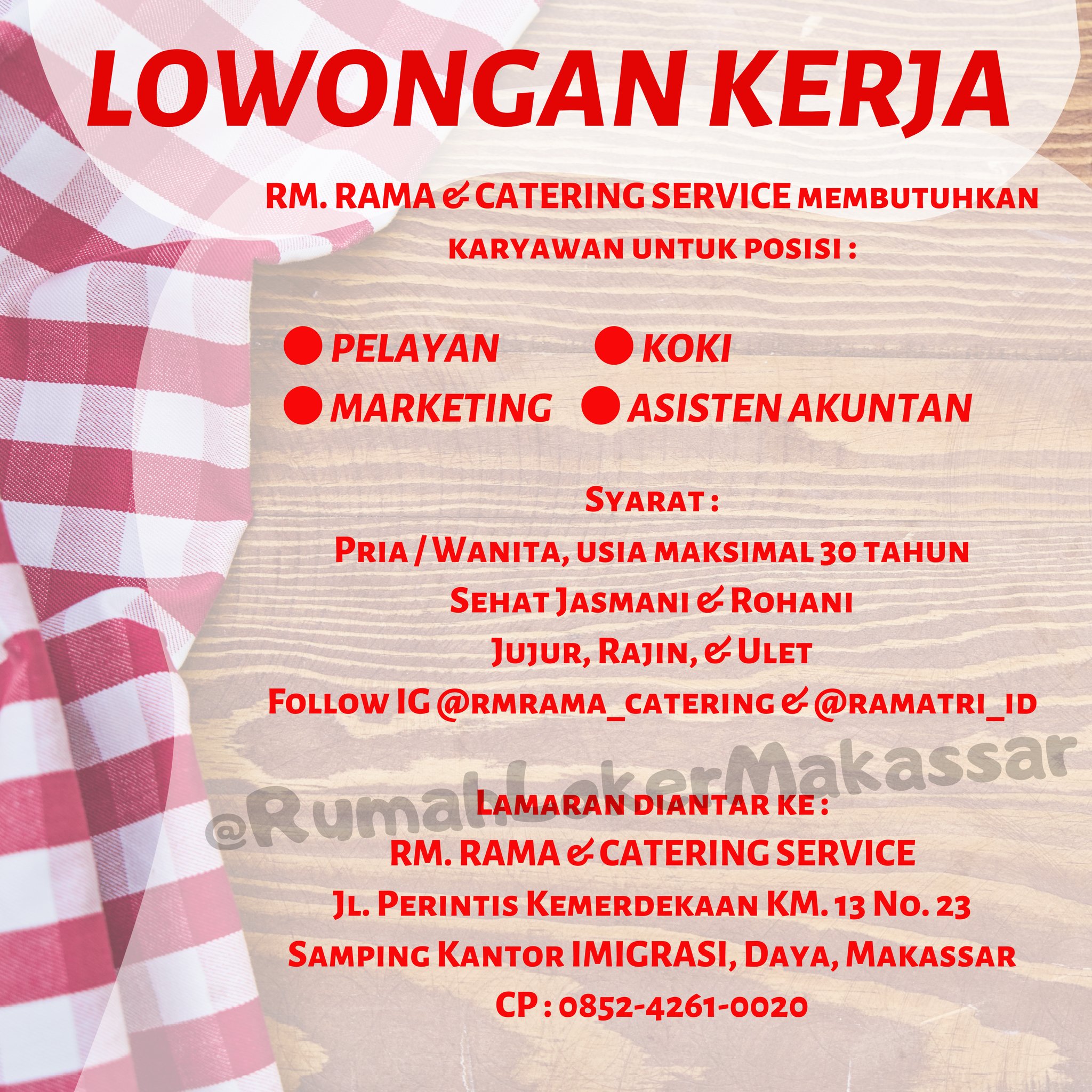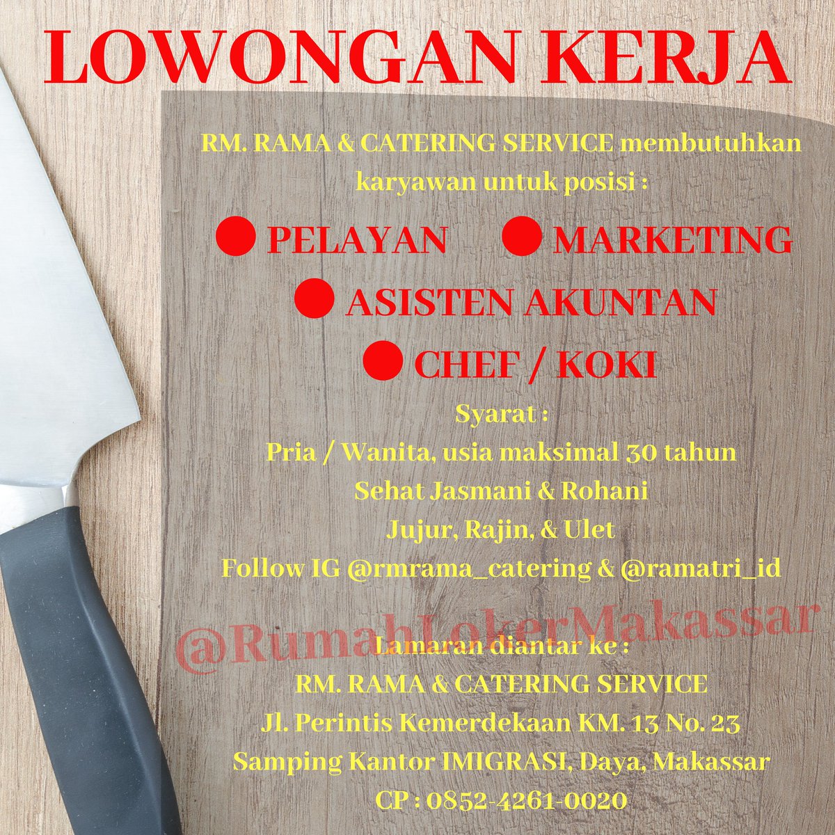 Rumah Loker Makassar A Twitter Rm Rama Catering Service Membutuhkan Karyawan Untuk Posisi Pelayan Marketing Asisten Akuntan Chef Koki Lamaran Diantar Ke Rm Rama