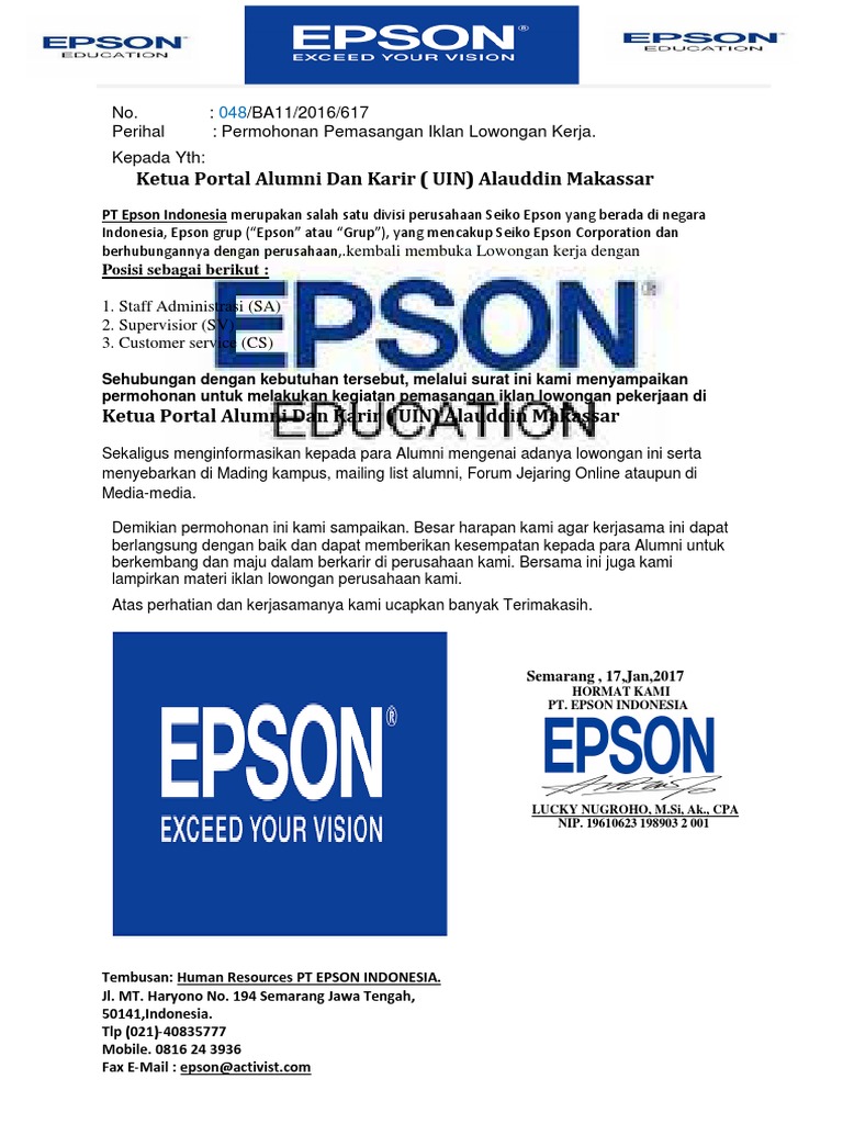 Permohonan Pemasangan Lowongan Kerja Pt Epson Indonesia